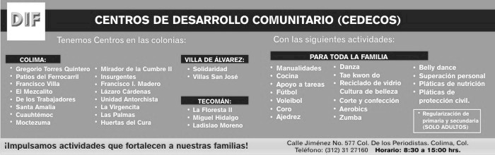 DIF Estatal Colima, Tel. +52 (312) 31 631 00, Contacto e-mail: taydehugo@gmail.com